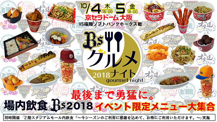 2018シーズンの最終戦シリーズとなる10月4日(木)、5日(金)にて、「Bsグルメナイト2018」を実施いたします。