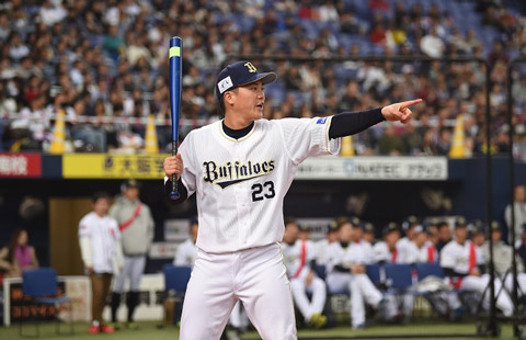 バファローズの選手たちがチームに分かれさまざまな対決を行います。