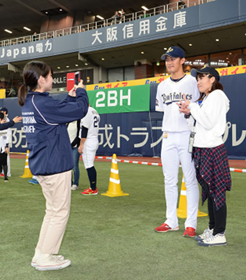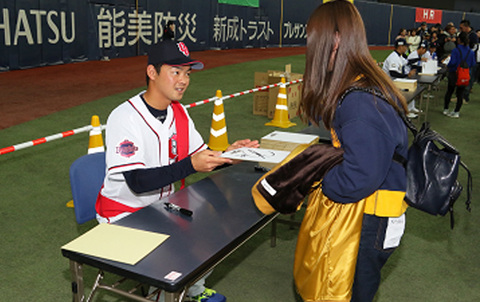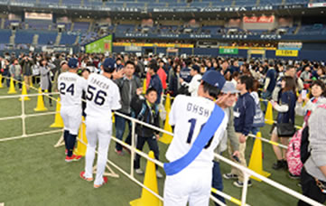 | 第1部 | 「サイン会」「写真撮影会」「ハイタッチ」「トークショー」「ミニ対決」 「その他」 >グラウンド(外野)にて選手ふれあいコーナーを実施予定 |