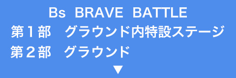 | 16:25~ | Bs BRAVE BATTLE(4)めざせ高得点!遠投ストラックアウト Bs BRAVE BATTLE(5)飛距離で競え!ぶち抜けバッティング Bs BRAVE BATTLE(6)お題に従え!サイコロソフトボール |