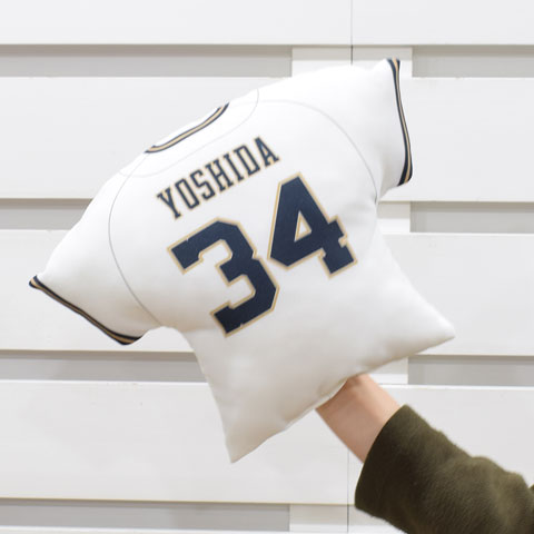 | 商品紹介 | 表側に手を入れられるポケットが付いているので、お部屋のインテリアとしてだけではなく、球場での応援にも使える楽しい2WAYクッションです。 |
