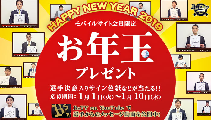 また、本日1月1日(火・祝)から公式モバイルサイトにて、2019年選手決意表明入りサイン色紙と選手直筆サイン入りレプリカジャージの「お年玉プレゼント企画」(※モバイルサイト会員限定)を実施します!
