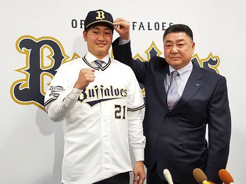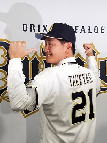 本日、舞洲青濤館にて、竹安大知投手の入団発表記者会見が行われました。