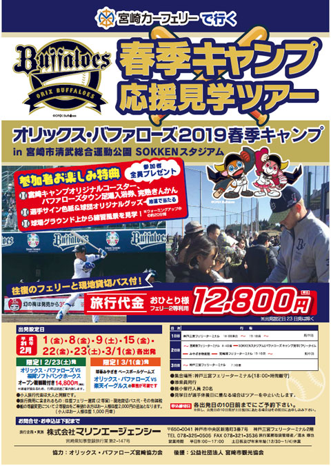 宮崎カーフェリーで行く「春季キャンプ応援見学ツアー」が、2019年2月に実施されます。