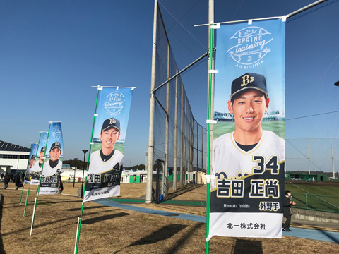2月17日(日)より、現在キャンプ地で限定販売しているキャンプのぼりグッズと、球団カメラマンが撮影したキャンプ前半の厳選フォトをオンラインショップにて受注販売いたします!