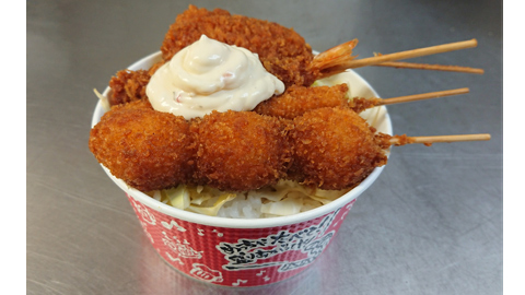 | コメント | なにわの名物串カツを、大胆にも丼ぶりに乗せてみました。ソースの甘さとキャベツのシャキシャキ感が見事にマッチした一品です! |