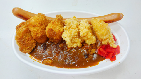 | コメント | ウィンナー、カツ、唐揚げとボリューム満天の猛牛カレー |