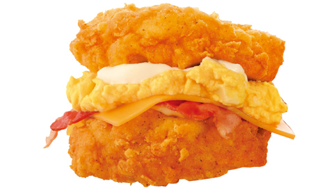 | コメント | バンズのかわりに2枚の骨なしケンタッキーで、チェダースライスチーズ、たまごサラダとローストしたベーコン2枚を、はさんだボリュームたっぷりのサンド。2階店舗限定販売です! |
