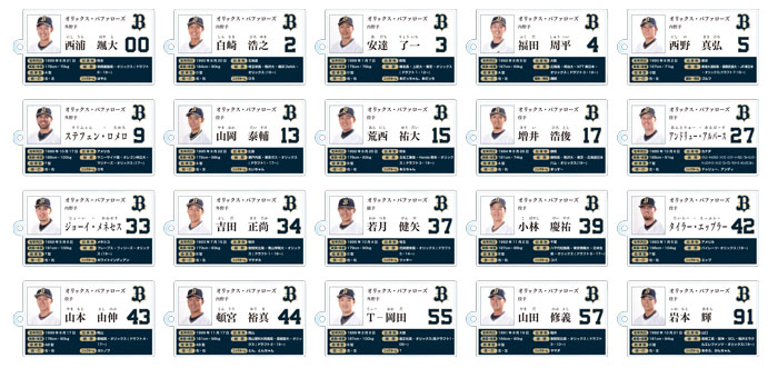 | 商品紹介 | 各選手の名刺をイメージしてデザインしたアクリルキーホルダー。それぞれ出身地・経歴・ニックネームなどが記載されています。ぜひコレクションにしてください! |