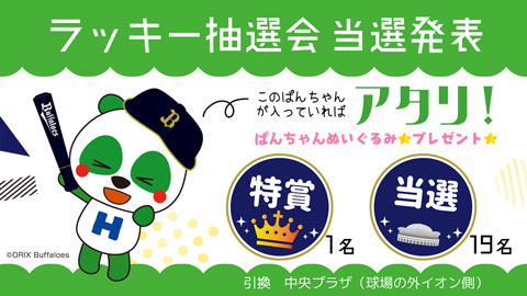 先着25,000名様にぱんちゃんのスペシャルジャンボぬいぐるみなどが当たる抽選券付きのぱんちゃんチラシを配布いたします。