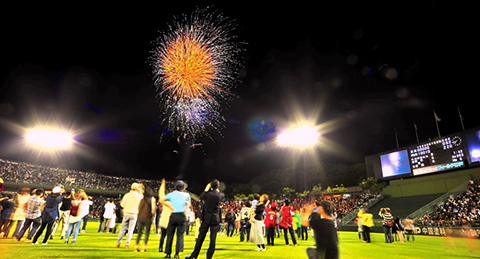 (2)5回裏終了と同時にグラウンド(ライト付近)へ移動し、打ち上げ花火をご覧いただきます。