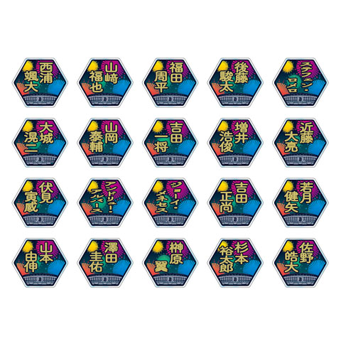 | 種類 | 26種(西浦、安達、後藤、マレーロ、山岡、増井、伏見、宮﨑、東明、富山、太田、メネセス、若月、鈴木昂、海田、澤田、小田、根本、青山、吉田凌、佐野、杉本、本田、漆原、フェリペ、バファローベル) |