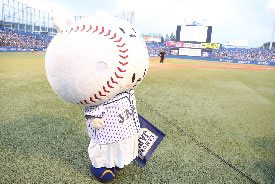 (4)侍ジャパン公式マスコット「たまべヱ」が京セラドーム大阪に来場!