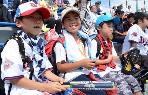 ウエスタン・リーグ公式戦を観戦するこどもたち