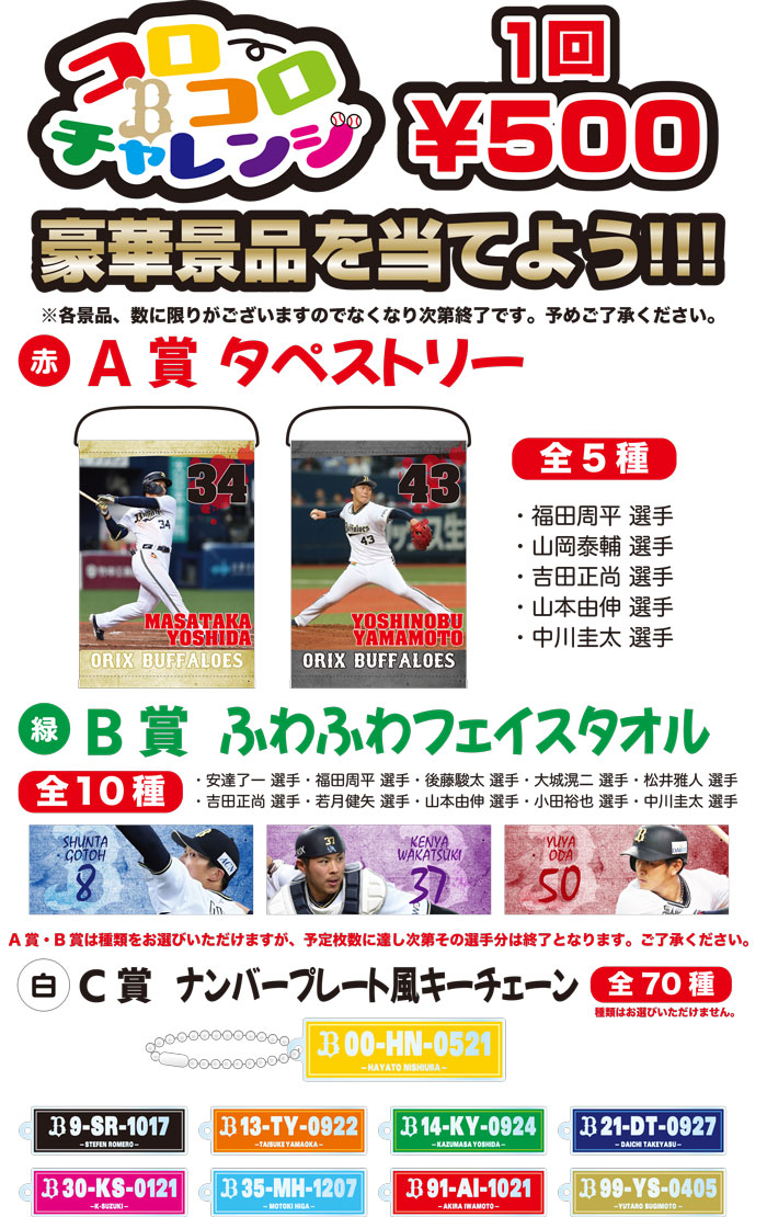 ※A賞、B賞の選手はお選びいただけますが、グッズがなくなった時点で終了となります。