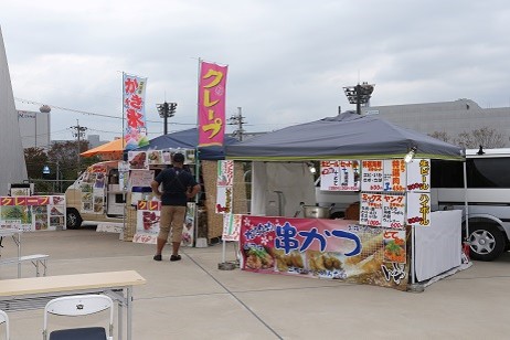 たこ焼き、焼きそばをメインに、大阪串カツやクレープ、かき氷等。生ビールやソフトドリンクも取りそろえ、皆さまをお待ちしております。