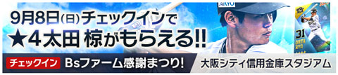 試合当日、「B9」アプリにログインし、球場にてチェックインをしてくれた皆様全員に★4太田椋選手カードと抽選で以下のイベントに参加できます。