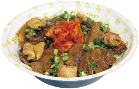 | 商品紹介 | NEW『けんけんの豚バラ・ホルモン丼』 香ばしく炙った豚バラとコリコリした豚ホルモンが主役のボリューム満点の一品。キムチの辛みが味を引き締めます! |