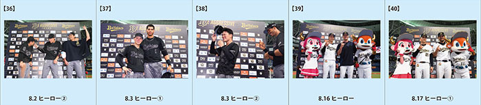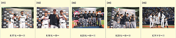 “マンスリーフォト”は、球団オフィシャルカメラマンがその月に撮影したプレー写真(ホームゲーム)の中から厳選したものを、写真やキーホルダーにして、その場でお渡しする商品です。