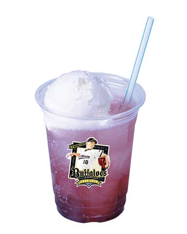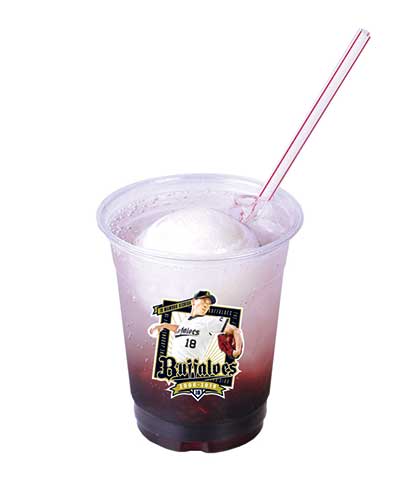 | 商品紹介 | 好きな色の紫をイメージした巨峰ソーダに、大好物のバニラアイスをトッピングした引退試合1日限定のプロデュースドリンク!ぜひ、皆さん飲んでください! |