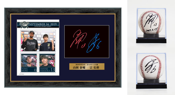 ホームゲーム勝利時、ヒーローとなった選手がヒーローインタビュー後、プレートにサインをしています。そのプレートを豪華に額装し、さらにヒーロー選手の直筆サインを入れた使用球をセットにして、オークション販売いたします。