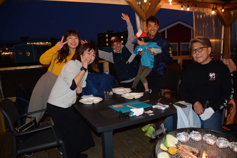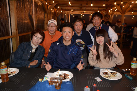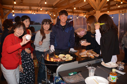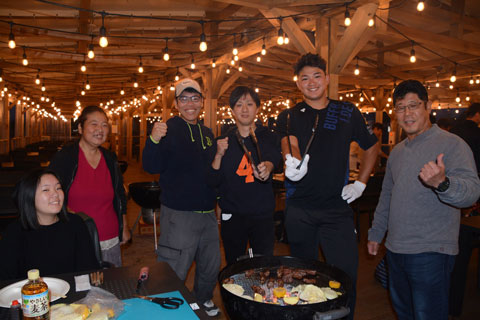 お楽しみ抽選会も実施され、選手のサインボールなどが景品に。抽選番号が読み上げられたファンは飛び跳ねて喜び、大満足の様子でした。松本和佳さん(14)は「いつもスタンドから見ている選手が、同じ目線にいるなんて最高!みんなとてもフレンドリーでもっと応援したくなりました」と満面の笑み。近鉄時代からの筋金入りのファン尾嵜守弘さん(72)は「若い選手の頑張る姿からいつもパワーをもらっている。その分、きょうは肉をたくさん焼いてあげました」と喜んでいました。