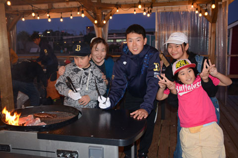 オリックス・バファローズは11月9日、「FAN FUN FARM『選手と一緒にBBQ!』」をパームガーデン舞洲のバーベキュー場で実施しました。左澤優、榊原翼、山崎颯一郎、吉田凌、神戸文也、本田仁海、東晃平の7投手が登場し、ファンと一緒にお肉をほおばり、楽しい時間を過ごしました。
