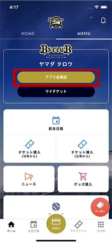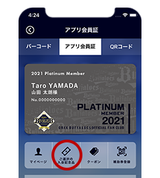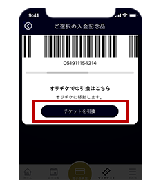 アプリ会員証画面の「ご選択の入会記念品」より、チケット引換券をオリチケからも球場窓口でもお使いいただけます。