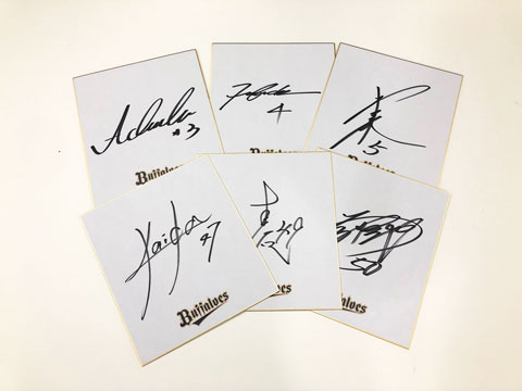 | プレゼント詳細 | ◆サイン色紙 10名様 (白崎選手、安達選手、福田選手、西野選手、吉田一投手、竹安投手、K-鈴木投手、海田投手、澤田投手、小田選手) ※直筆サインは、多少の滲み・歪み・かすれなどがある場合がございますのでご了承ください。 |