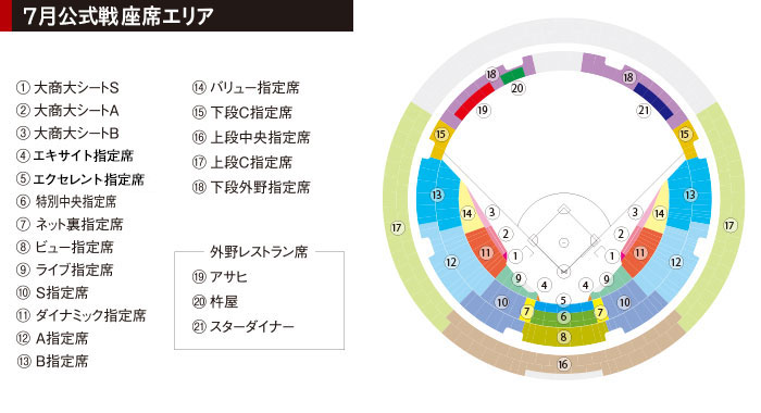※7/10~12の試合では、上段席の販売はありません。7/14~19の試合では上段外野指定席の販売はありません。