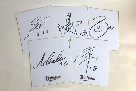 | プレゼント詳細 | ◆サイン色紙 10名様 (安達選手、山崎福投手、吉田一投手、山本投手、伏見選手、松井雅選手、山足選手、小田選手、松井選手、榊原投手) ※直筆サインは、多少の滲み・歪み・かすれなどがある場合がございますのでご了承ください。 |