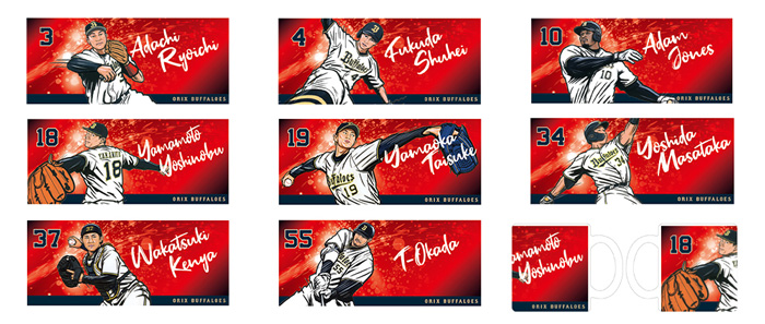 野球を題材としたイラストを中心に活躍中のイラストレーター 横山英史氏とのコラボグッズが登場します!横山氏ならではのダイナミックなタッチで、プレーの瞬間を捉えたイラストです。今回のモデルは、安達選手、福田選手、ジョーンズ選手、山本投手、山岡投手、吉田正選手、若月選手、T-岡田選手の計8選手。この機会をお見逃しなく!