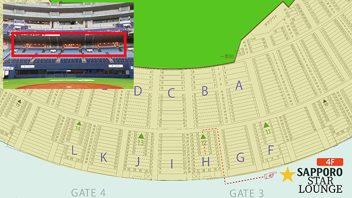 ※今シーズンは、エクセレント指定席・特別中央指定席の「サッポロスターラウンジ利用&飲食サービス」実施はございません。
