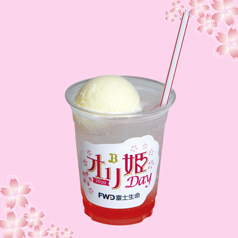 | コメント | 今年もオリ姫オリジナルユニフォームにデザインされている”桜”をイメージした、サクラ色の可愛いドリンク♪桜シロップに少し酸味のあるグレープフルーツソーダを加え、今年は最後にバニラアイスをトッピング♪このオリジナルドリンクを飲んで、オリ達にも負けない熱い応援を!! |