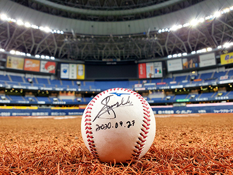 ※「キャリア初ホームラン」等の記念球の場合は、サインボールのプレゼントとなります。