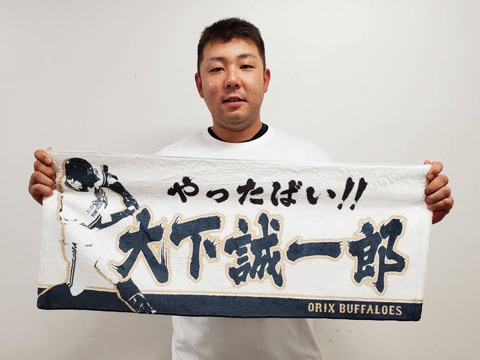 育成ドラフト出身では日本球界初となる初打席初本塁打で、その存在を大きくアピールした大下選手。注目と期待を集める大下選手のグッズが、ついに!10月2日(金)より発売となります。バファローズファンの心をつかんだ北九州の方言をメインワードに、大下選手の“ビッグスマイル”やホームランのインパクトの瞬間をデザインした4アイテム!このグッズを片手に、華々しくデビュー戦を飾った大下選手へ熱いご声援をお送りください!