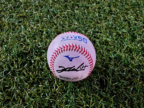※「キャリア初ホームラン」等の記念球の場合は、サインボールのプレゼントとなります。