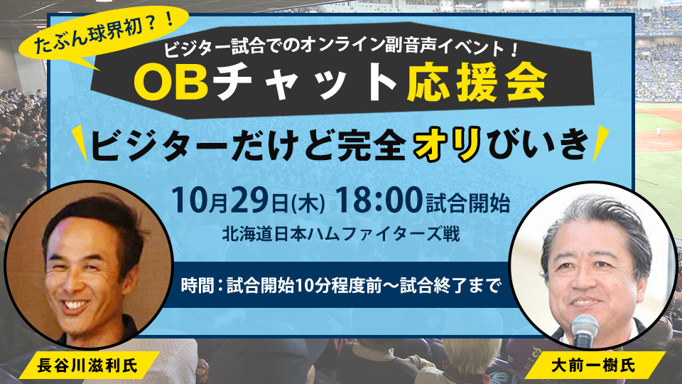 10月29日(木)ビジターでの北海道日本ハム戦で、「ビジターだけど完全オリびいき!OBチャット応援会」を開催します!