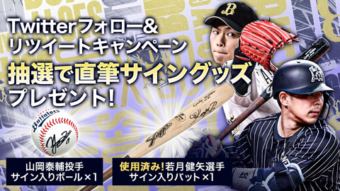 実際に選手が使用したバットに、直筆のサインが書かれた激レアなお宝グッズなどが当たる大チャンスです。今すぐアプリをダウンロード&リツイートして、応募しよう!