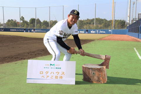 宮城投手には、年間MVP賞として、「ログハウスBBQ&朝食付きペア宿泊プラン」が贈られます。