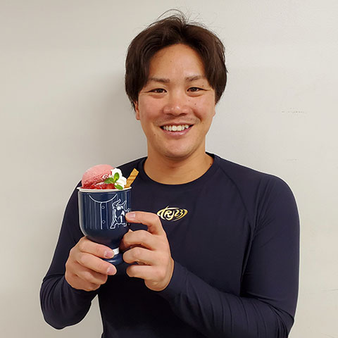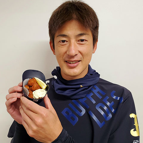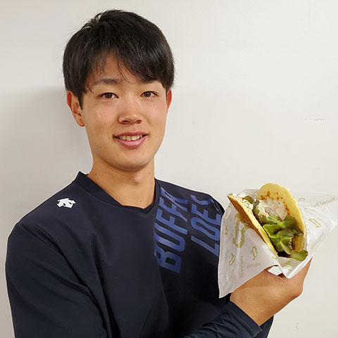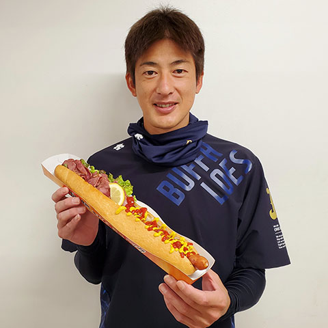 今シーズン、その思いから選手プロデュースメニュー特別企画として「イカプロジェクト」を始動しました。その第一弾として商品化するのは山本投手が少年時代、お祭りで必ず食べていた「イカ焼き」!味も形も山本投手の思い出どおりに再現しました。