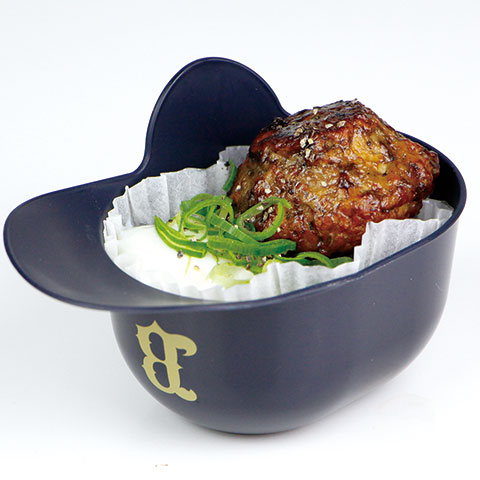 | 商品紹介 | 『能見さんのいてまえあつ塩(篤史)タンドッグ』 スモークした豚タンを能見投手兼任コーチこだわりの食べ方であるゴマ油と塩ダレで味付けしたボリュームたっぷりのドッグです! |