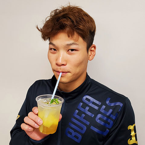 | 商品紹介 | たいちゃんのかち割りピーチスパークリング』※アルコール飲料 山岡投手が好きな桃を使用したスパークリングワイン! 白桃のダイス入りで甘くフルーティーな仕上がり♪ 飲みやすくてリピート間違いなし!! |