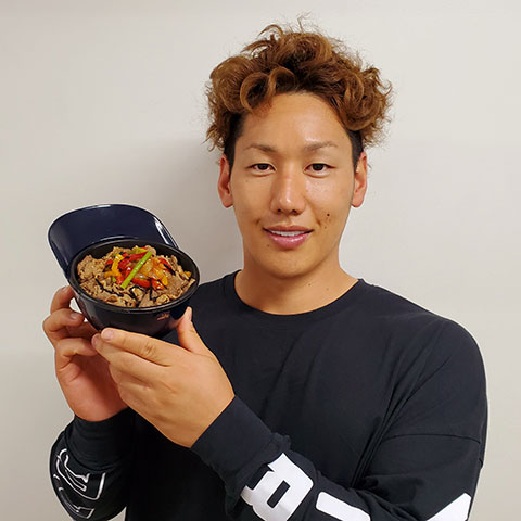 | 商品紹介 | 『正尚のパワー全開!プルコギ丼!!』 吉田正尚選手の好きな牛肉を使用したプルコギ丼!! プルコギのタレには、アクセントに痺れるラー油! パンチを効かせたボリューム満点の一品です。 |