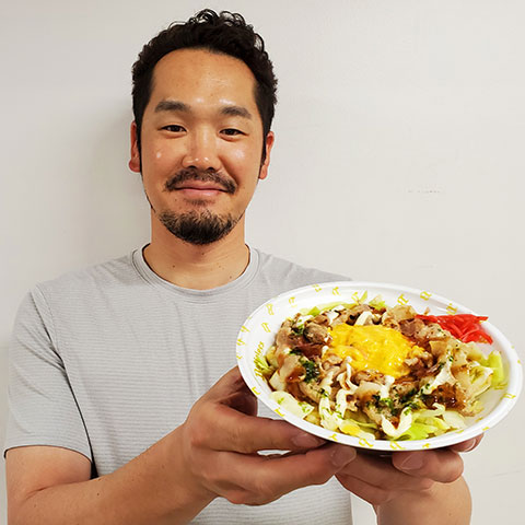 | 商品紹介 | 『T-のお好みDON』 地元大阪のお好み焼きをイメージした丼!! ソースとご飯の相性は抜群でボリューム満点の一品です♪ 是非、ご賞味ください!! |