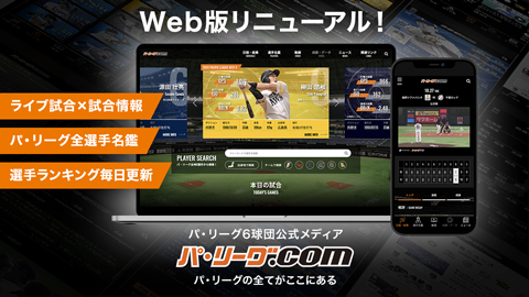 パ・リーグ6球団公式メディア「パ・リーグ.com」は、Web版を大幅リニューアルし、2021年3月26日(金)に公開したことをご案内いたします。「パ・リーグ.com」は、“パ・リーグの全てがここにある“をキーコンセプト に、2018年3月にリリースしたパ・リーグ6球団公式メディアです。2021年シーズン開幕に合わせてリニューアルした「パ・リーグ.com」Web版は、試合映像とデータの連携など、大幅な機能強化をしています。