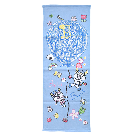 | 商品紹介 | はるらしい絵をいっぱいかいてみたのと、バファローズがどんどんかって上に上にいけるようにふうせんにねがいをこめてかいてみたよ♪ ラッキー7のときこのタオルつかってくれたらめちゃくちゃうれしいなぁ〜 |