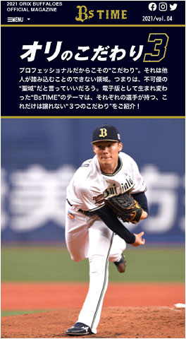 デジタル版「BsTIME」は、シーズン中、毎月2回程度発行予定。活躍中の選手の「オリのこだわり3」を紹介いたします。