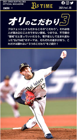 デジタル版「BsTIME」は、シーズン中、毎月2回程度発行予定。活躍中の選手の「オリのこだわり3」を紹介いたします。