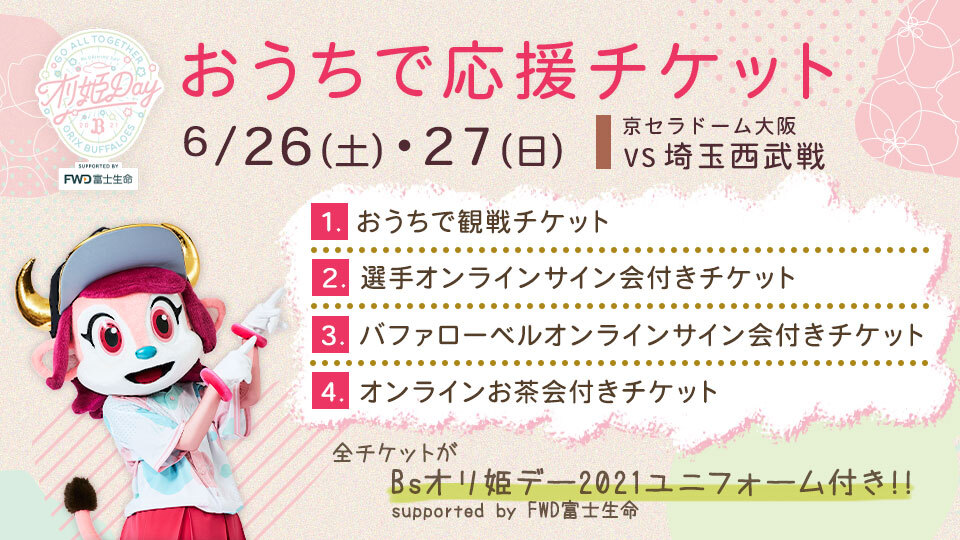 Bsオリ姫デー2021 supported by FWD富士生命 おうちで応援チケットを販売!